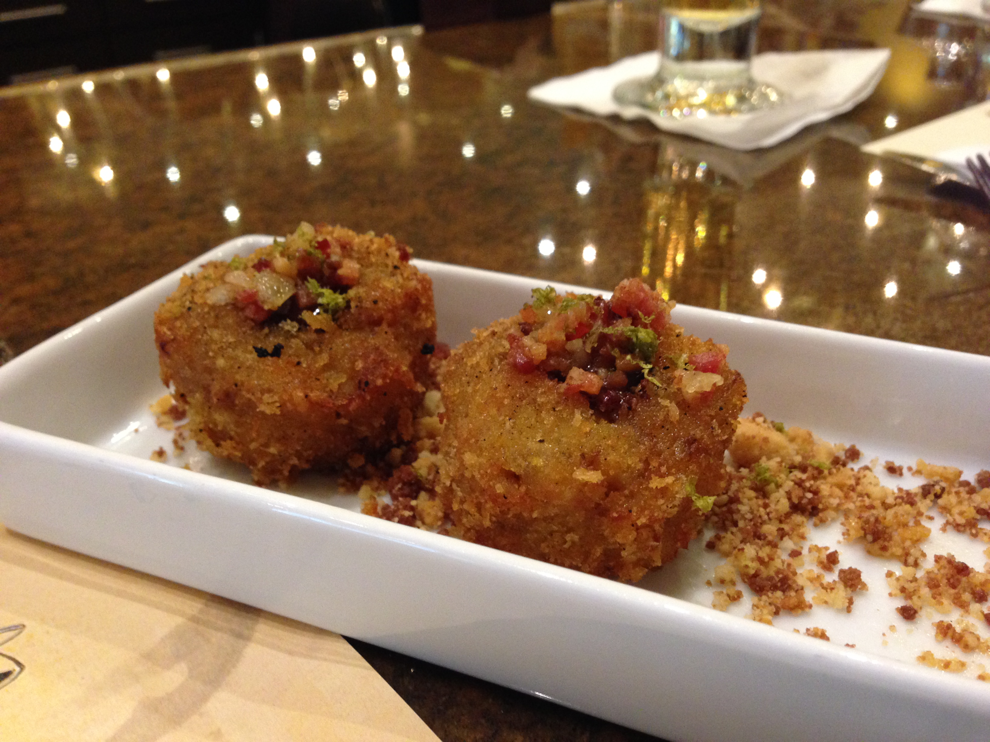 We decided to try one of their tapas, mofongito. Traditionally, mofongo is mashed plantains and either topped or filled with chicken, beef, pork, or seafood. Here, they were a smaller version and filled with chocolate. Amazing, unique, innovative. It’s definitely a one-of-a-kind place to grab a drink, meal, snack, or even chocolates to take home.