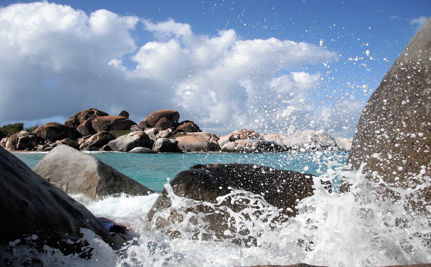 The Baths are located at the bottom of a hill on the southern end of the island. The boulders form a network of caves and rest on powder white coral sand along the water’s edge. Wading in and out of sandy-bottomed tide pools and the Bath’s Cathedral Room – mysterious water filled grottos – my adventure took me through a maze of tunnels and arches.
