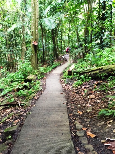 Continue to drive up the mountain side and park at the next lot and hike Big Tree Trail which leads to La Mina Falls. It’s about a half hour hike in, and another half hour out. Don’t enter the water at the base of the falls during an especially rainy period. The waters are swift and powerful and if you slip and fall it will be difficult to get out. Other times they are calm and tranquil and taking a dip at the base oftentimes becomes a popular activity.